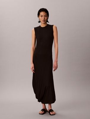 Abito midi asimmetrico in cotone a costine