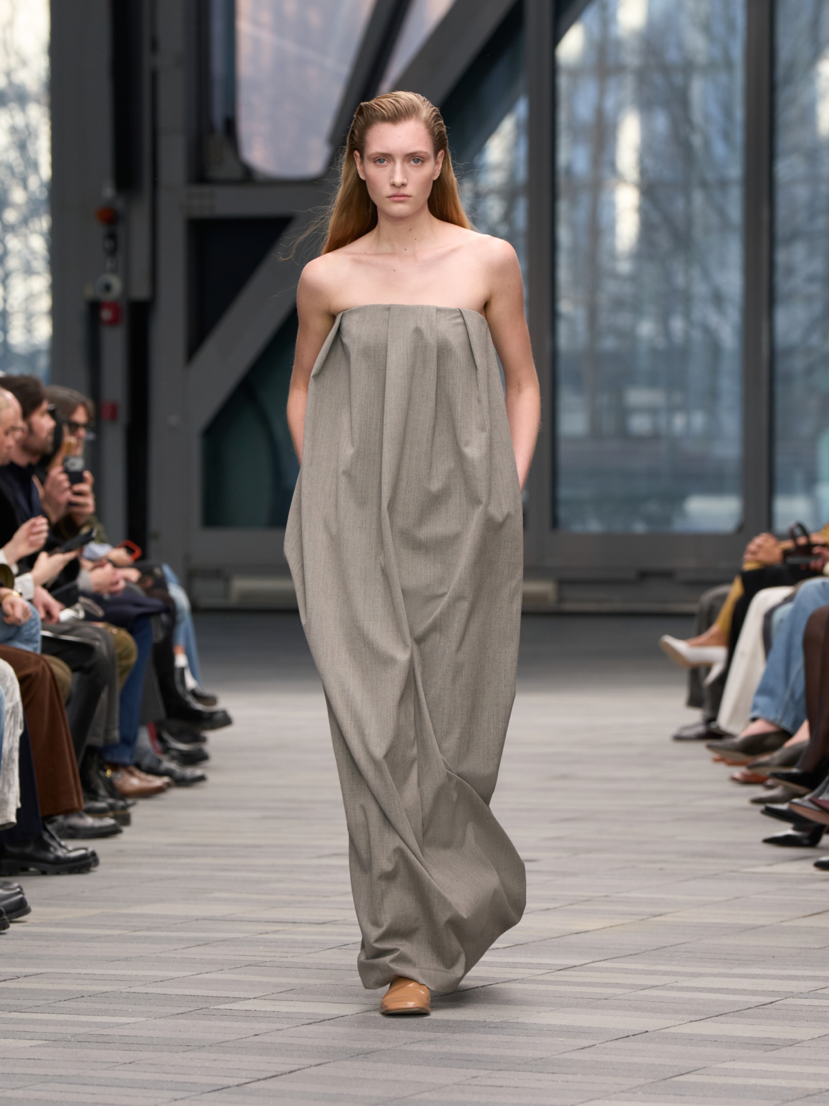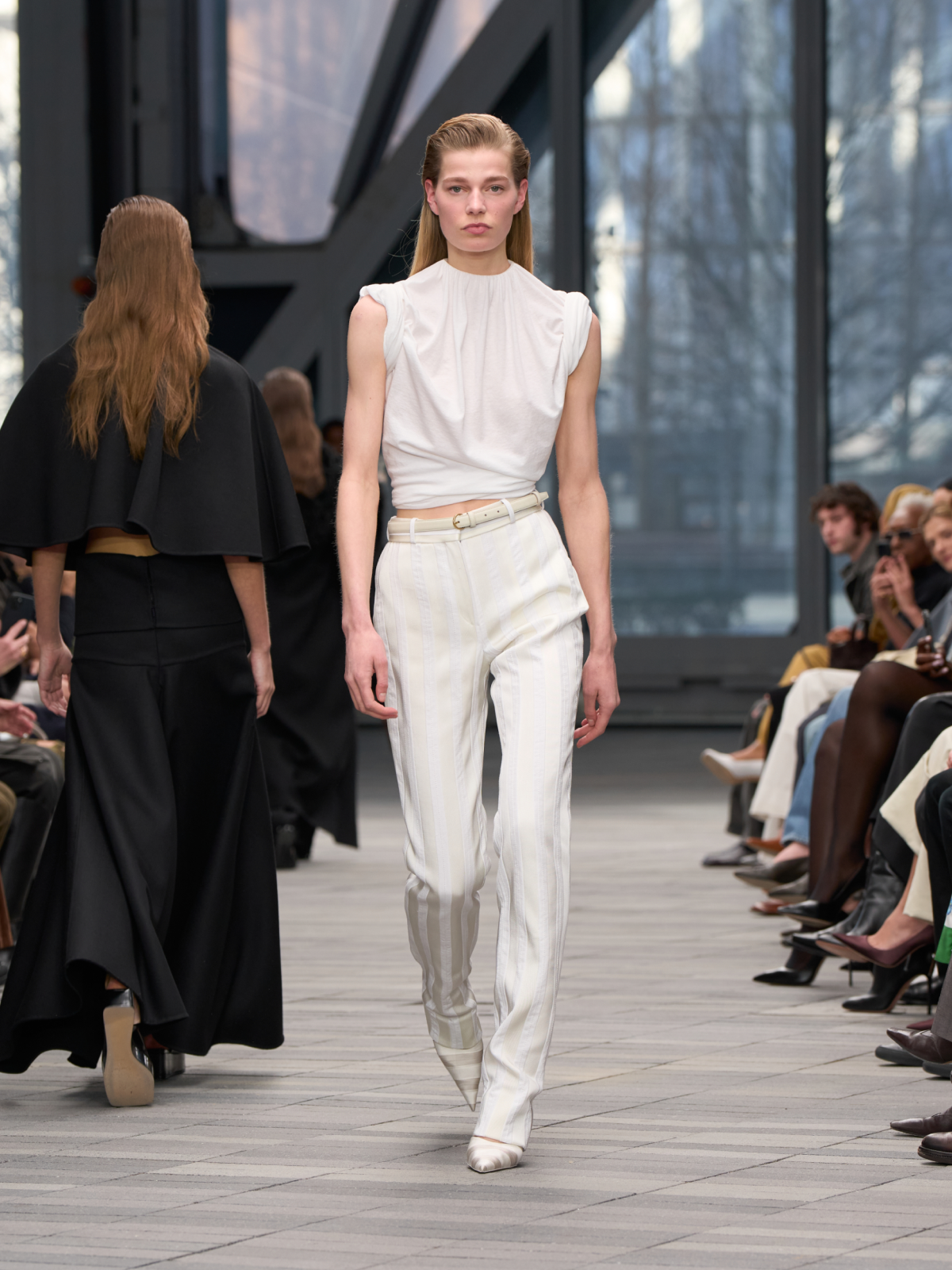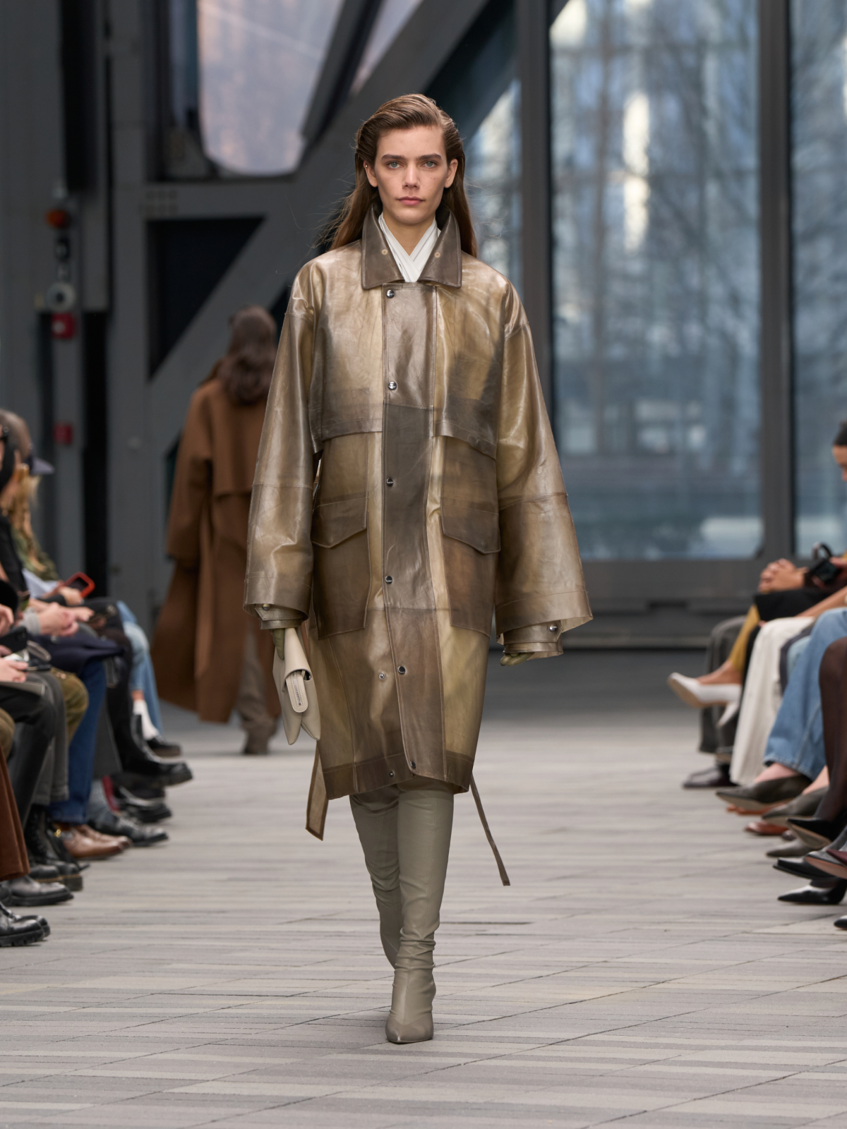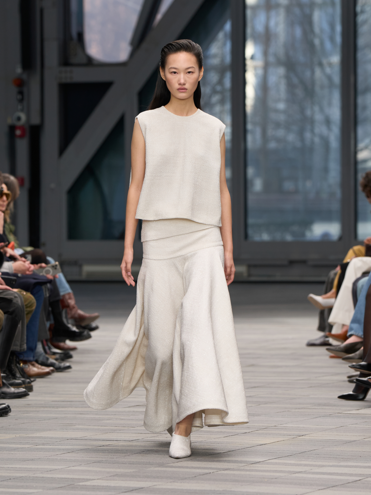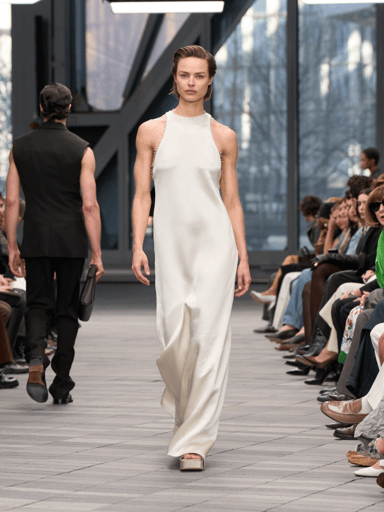 Calvin Klein Collection rappresenta l’apice dell’espressione del brand. Disegnata da Veronica Leoni, la sfilata Autunno 2025 è un’ode al minimalismo monumentale.