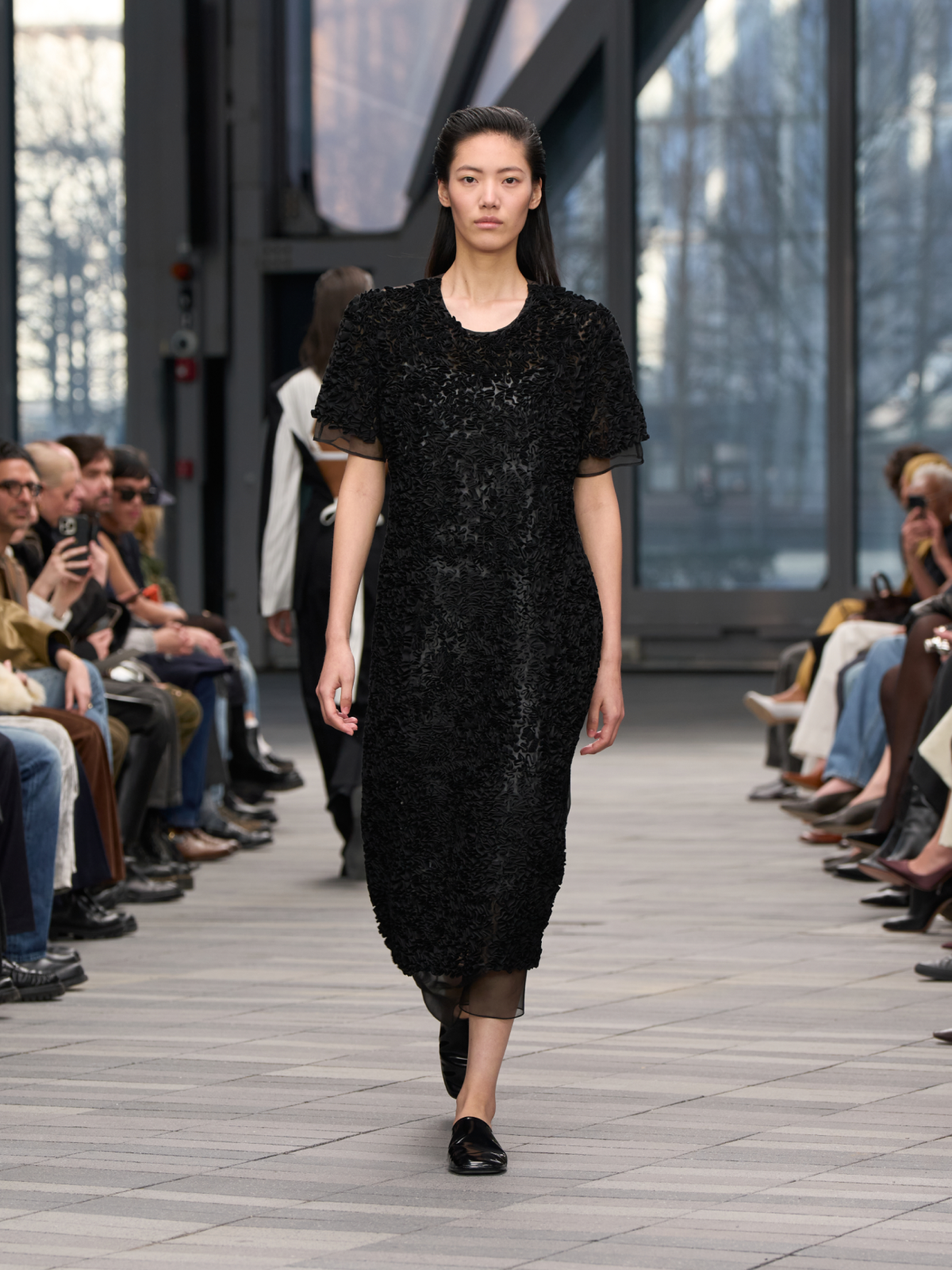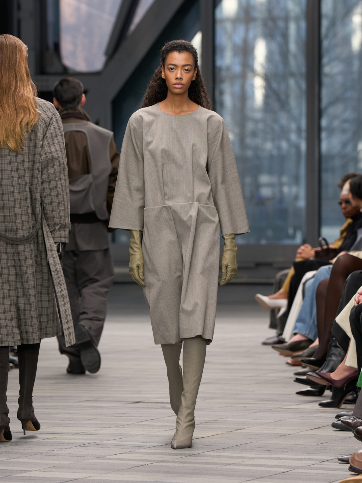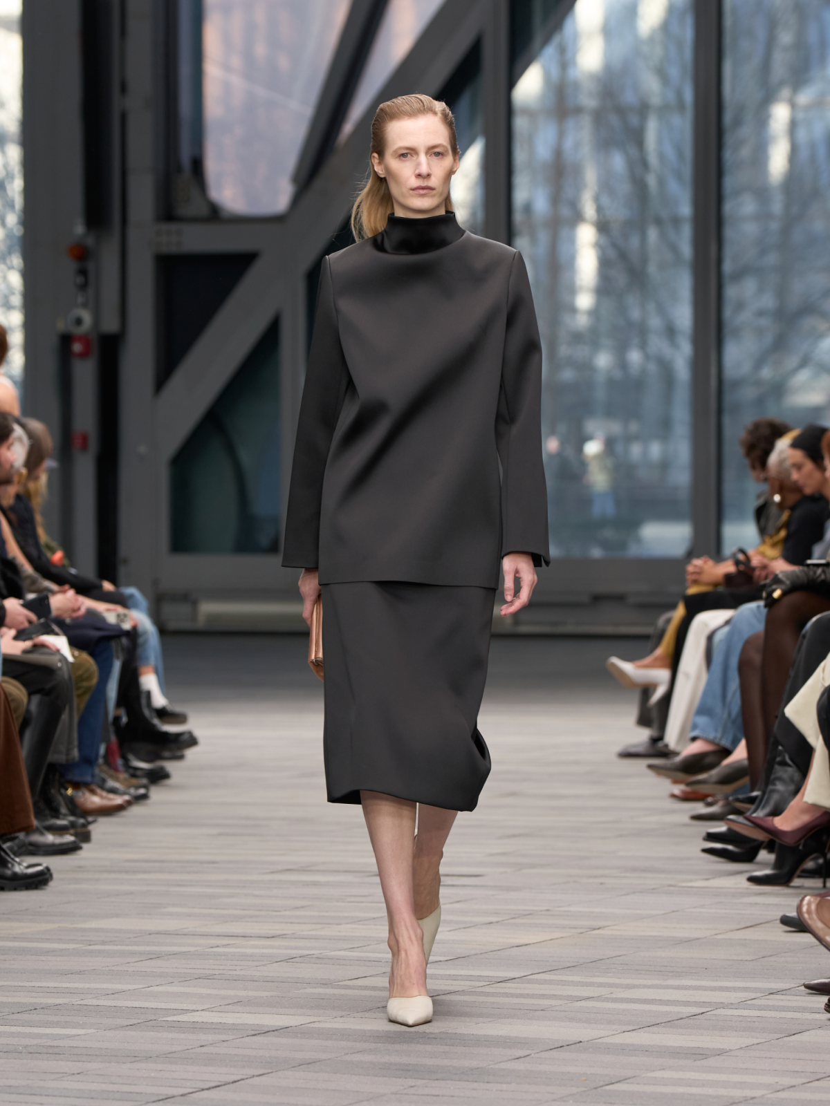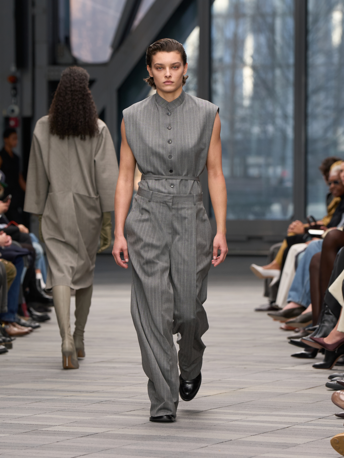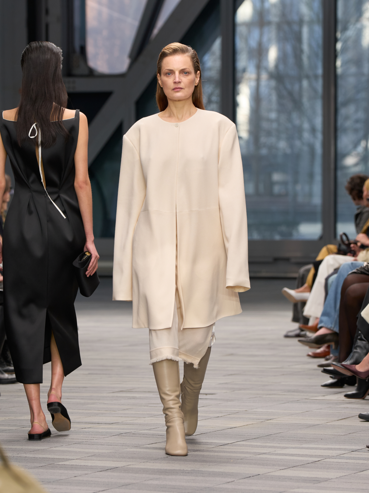 Calvin Klein Collection rappresenta l’apice dell’espressione del brand. Disegnata da Veronica Leoni, la sfilata Autunno 2025 è un’ode al minimalismo monumentale.