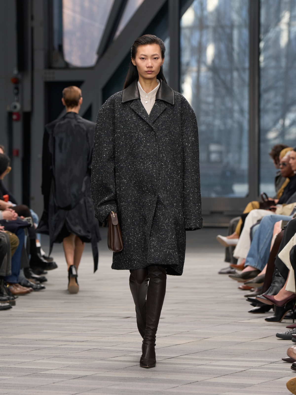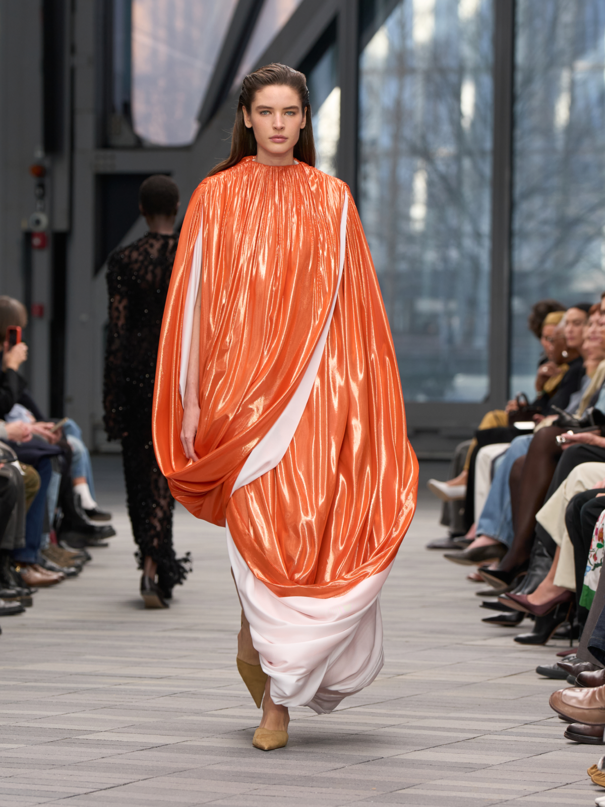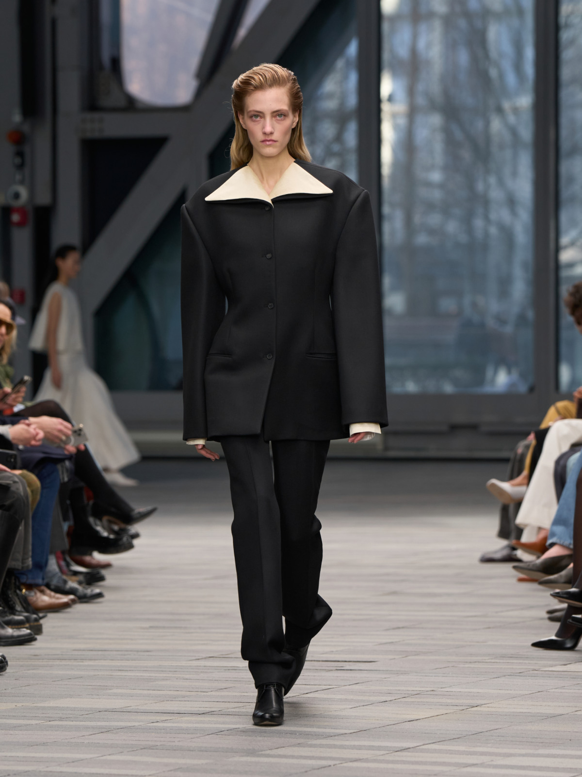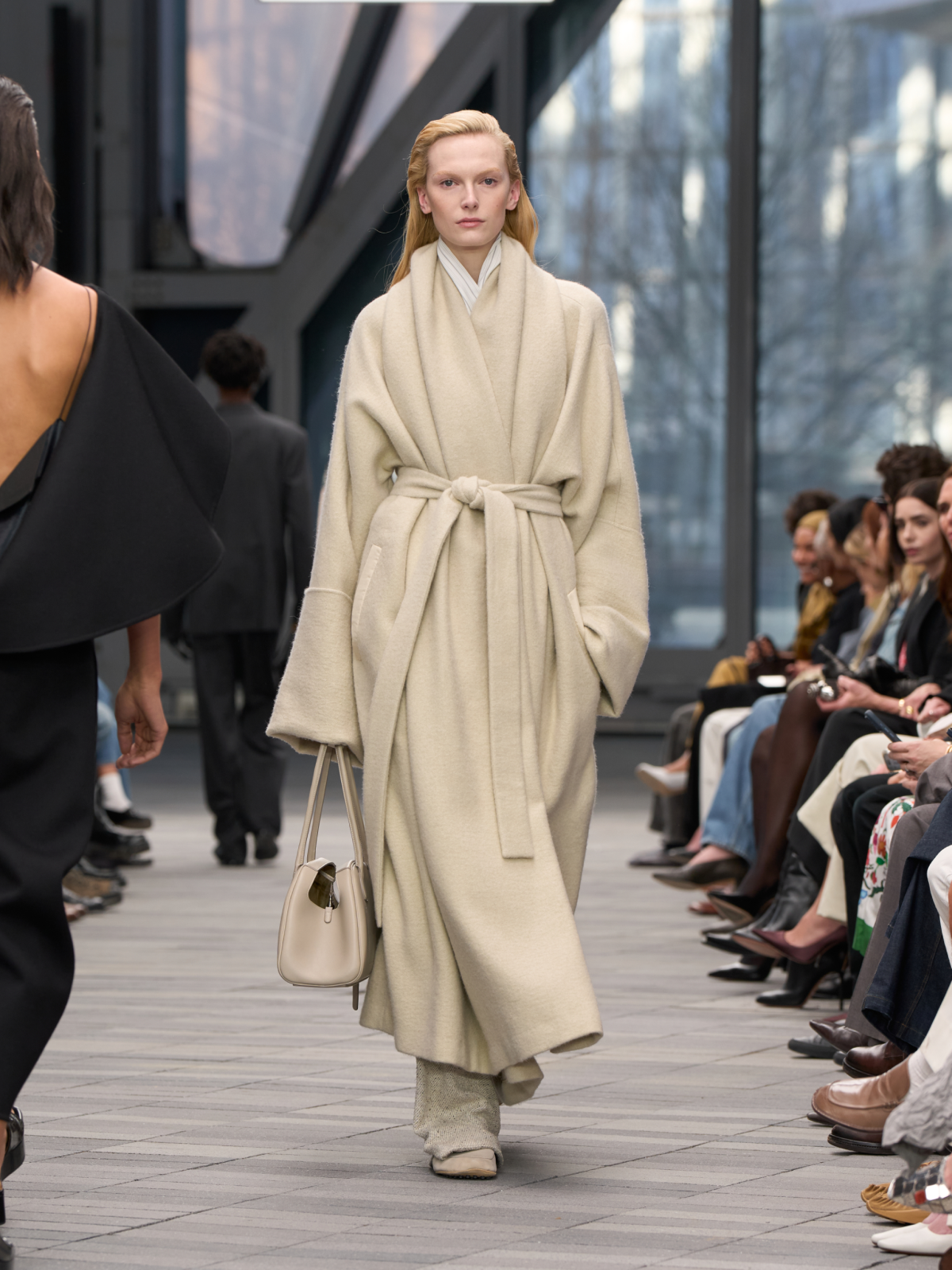 Calvin Klein Collection rappresenta l’apice dell’espressione del brand. Disegnata da Veronica Leoni, la sfilata Autunno 2025 è un’ode al minimalismo monumentale.