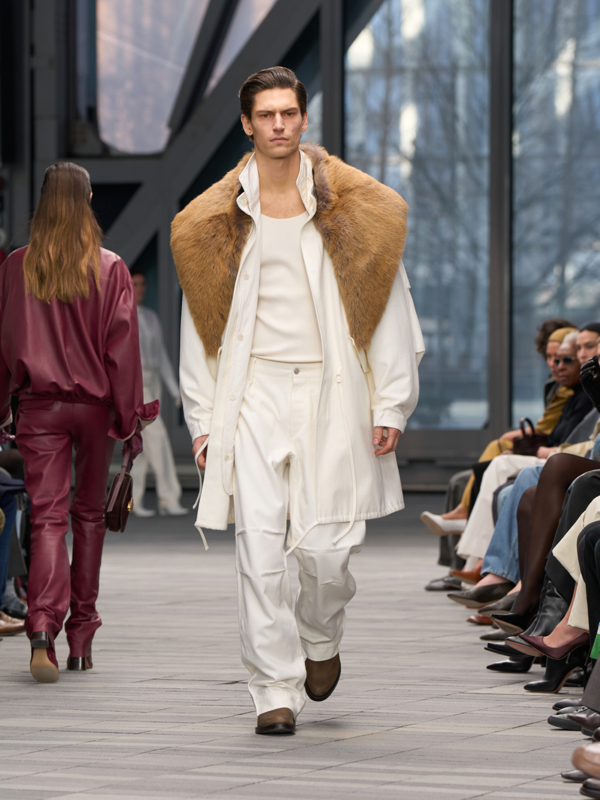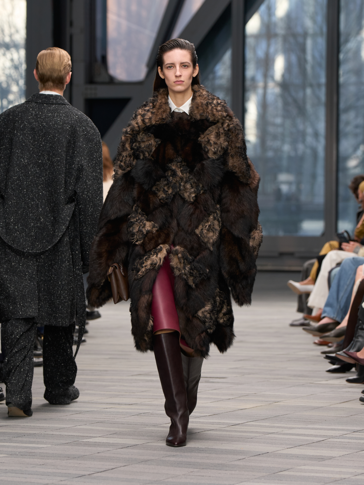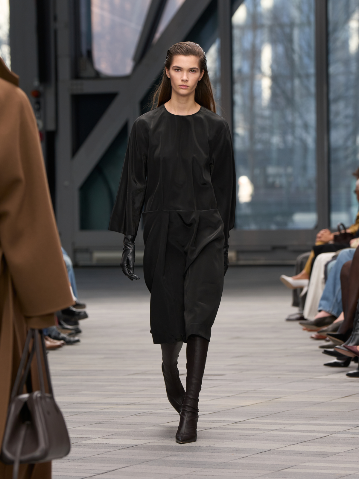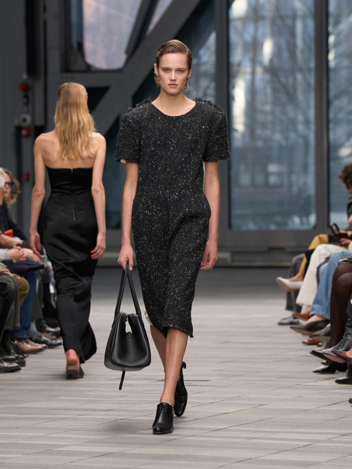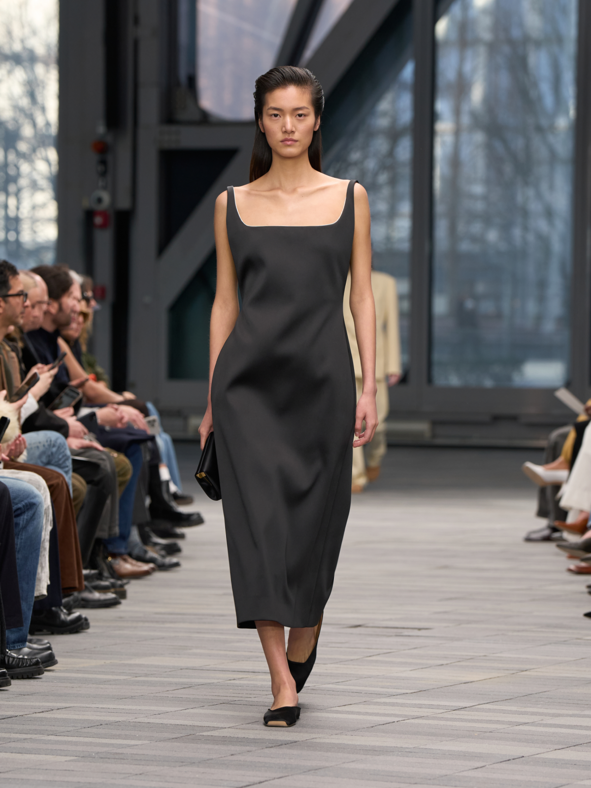 Calvin Klein Collection rappresenta l’apice dell’espressione del brand. Disegnata da Veronica Leoni, la sfilata Autunno 2025 è un’ode al minimalismo monumentale.