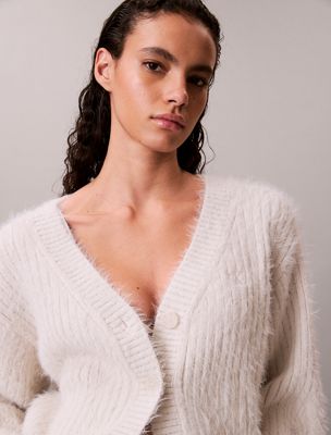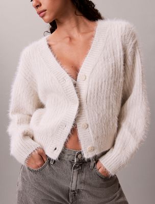 Cardigan corto in misto nylon peloso