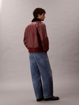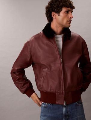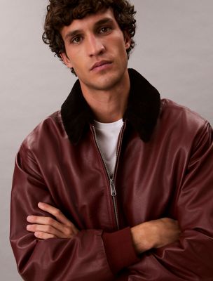 Giubbotto bomber in pelle con colletto shearling
