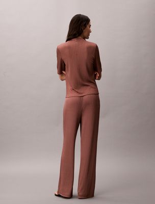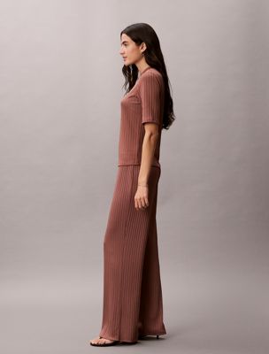 Questi pantaloni, pensati per valorizzare la silhouette, sono realizzati in morbido jersey a costine dalla lucentezza brillante.