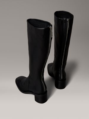 Stivali al ginocchio con punta quadrata e zip in pelle